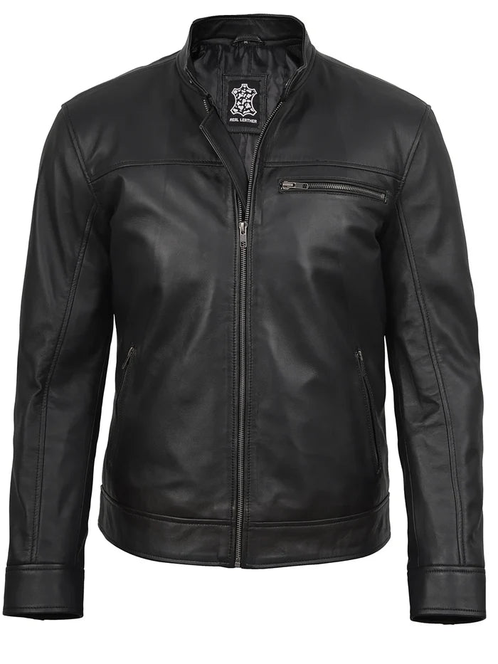 Bickford Mens Black Cafe Racer Style Real Leather Jacket